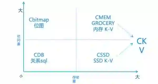 作为社区类服务,虽然用户的热点并不是很集中,但数据量、访问量还是很大。大量用 CKV 存储,同时针对访问量非常大的问题,如说用户没有开通空间,游戏用户,会员等标记,之后均做一个定位,形成一个高访问量的模块即可。