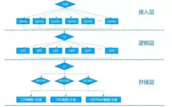 存储层,因为每一个存储模块要分耗段,故加入 Access,从上到下把技术架构进行了统一规范,同时在组织上也通过接入逻辑运维层,进行标准化的维护。