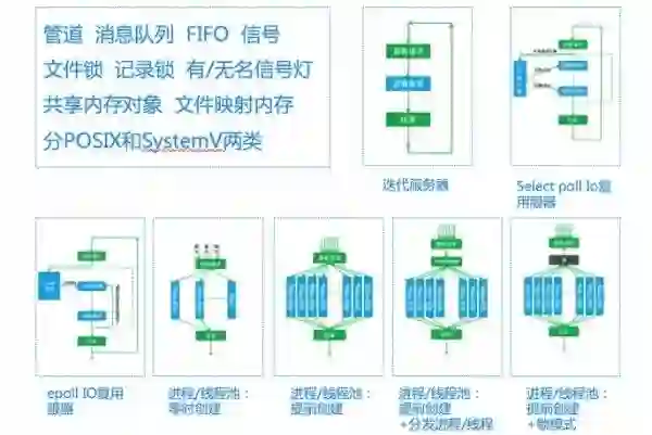 那么,问题来了。在开发过程中,如下图,有管道、消息队列、信息文件锁、记录锁、文件影射内存、还有迭代服务器 Select poll Io 等,这些是用各种各样技术组合生产出来的代码,交给团队维护,数以万计不同性格的服务器,要掌握得非常好,了解它的工作机制和原理,更好的维护它基本上是不可能的。