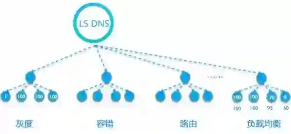 运营管理系统管理了上亿服务器,脉络非常清晰,根本不会出现混乱。L5 系统(上图)也类似于 DNS 系统,有一排能提供的服务模块,从而解决的单点问题。