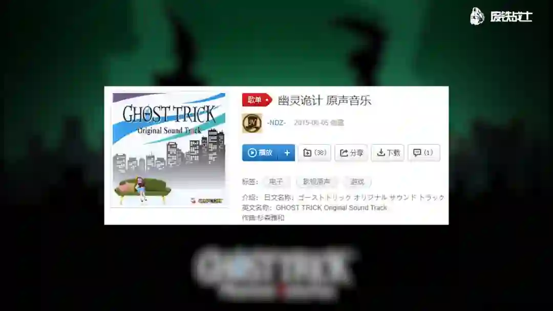 《逆转裁判》系列的音乐非常出色,尽管发布平台是音乐表现性不佳的GBA,但是与场景结合非常贴切的音乐,堪称游戏音乐史最佳作曲之一。之后《逆转裁判》的音乐也被频繁改编成爵士乐和交响乐,有兴趣的朋友可以找来听一下。《幽灵诡计》基本延续了《逆转裁判》的风格,旋律好记,氛围渲染强,非常洗脑,这次的主题音乐也是如此。由于主角是作为幽灵在参与游戏,《幽灵诡计》的音乐也很多营造了阴森的氛围,但是加入一些明亮的音色,颇有黑色幽默之感。
