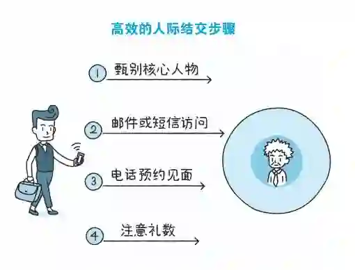 一般来说,与人结交没有严格的定式,但我们针对职场人际中以上的“黑色区域”,总结了几点高效的人际协调与结交步骤。