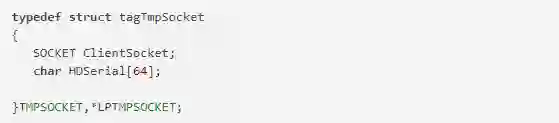 该结构用来存储连接到控制端上的socket信息以及相应的硬盘序列号。在后面的使用中将此结构存储到vector中用于管理被控端。