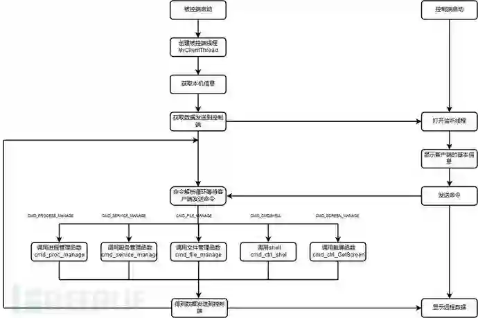 控制端控制被控端,实现进程之间的通信。