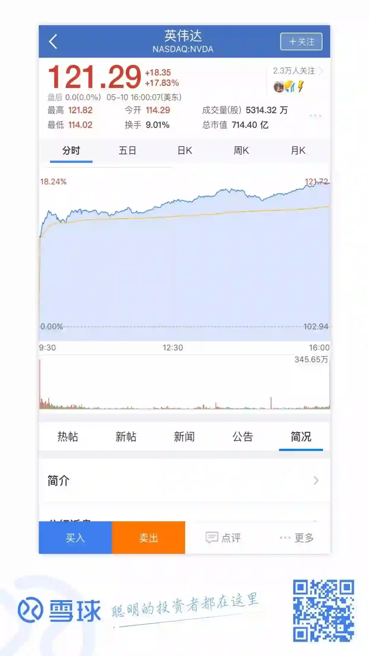 来自“雪球”的数据显示,5月10日收盘时,英伟达股价涨了17.83%,总市值已经超过了700亿美元的大关。同时,高通的市值为817.61亿美元,而此前一直处在“老大”位置的英特尔,市值1700.06亿美元。