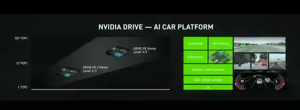 Drive PX使用了一个称为Xavier的新处理器。Xavier 可以在深度学习应用程序中每秒执行30万亿次操作,功率仅为30瓦。丰田就将把英伟达的Drive PX超级计算机使用到其无人驾驶车辆身上。