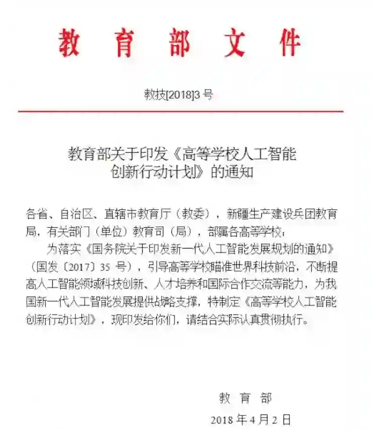 为了落实《新一代人工智能发展规划》,人才培养是关键。教育部在近日正式发布了《高等学校人工智能创新行动计划》。