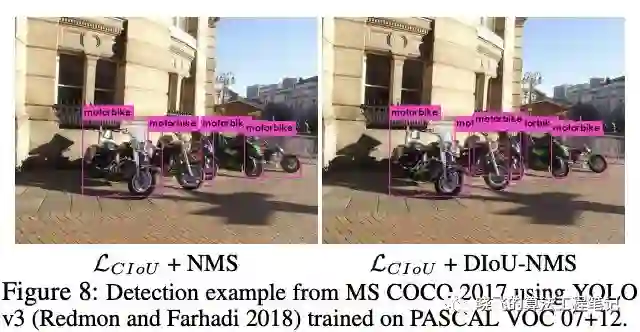 如图8所示,DIoU-NMS能够更好地引导bbox的消除