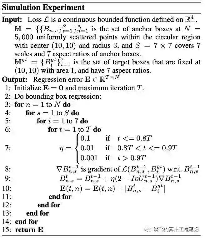 给定一个loss函数 ,可以通过梯度下降来模拟bbox优化的过程。对于预测的bbox , 为 阶段的结果, 为 对 的梯度,使用 来加速收敛。bbox的优化评价使用 -norm,共训练200轮,error曲线如图3b所示