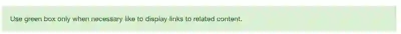 <div class="alert alert-block alert-success">Use green box only when necessary like to display links to related content.</div>