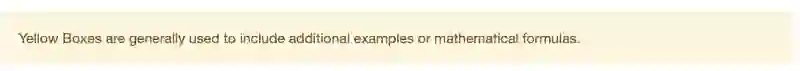 <div class="alert alert-block alert-warning"><b>Example:</b> Yellow Boxes are generally used to include additional examples or mathematical formulas.</div>