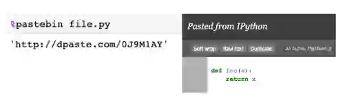 %pastebin将代码上传到Pastebin并返回url。Pastebin是一个在线内容托管服务,可以存储纯文本,如源代码片段,然后通过url可以与其他人共享。事实上,Github gist也类似于pastebin,只是有版本控制。