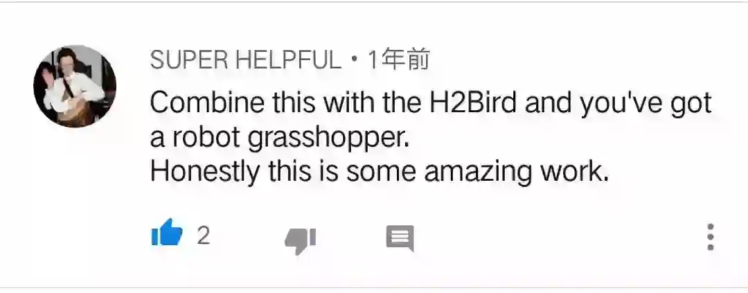 将Salto和H2Bird组装在一起,你将得到一个蚱蜢机器人。说实话,这是一项了不起的工作!