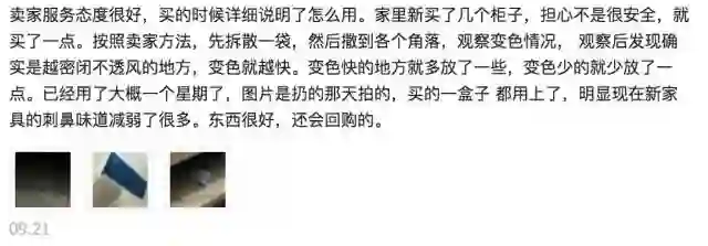 拿到醛视净后,床下放了一袋,门后放了一袋,阳台放了一袋,从测试仪的数值上看明显是有变化的。另外头晕的现象也好多了。