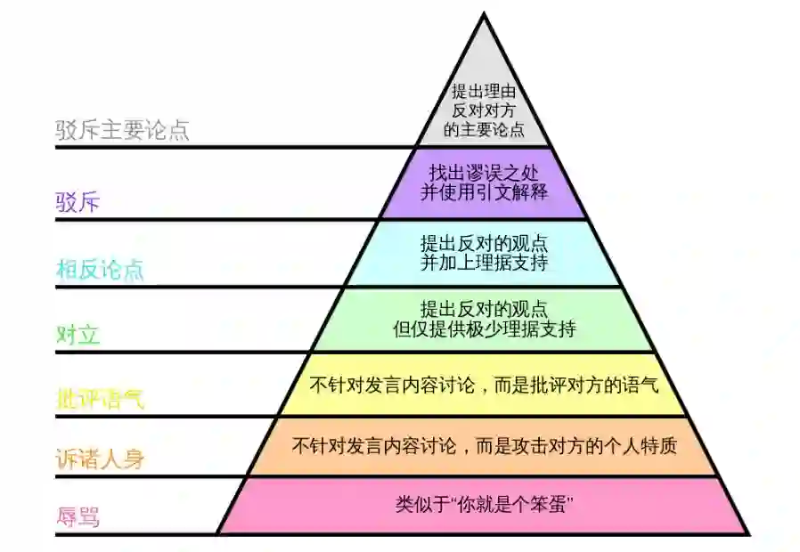 硅谷创业之父 Paul Graham,在一篇文章 How to disagree 中,提出过一个经典的“反驳金字塔”(Hierarchy of Disagree):