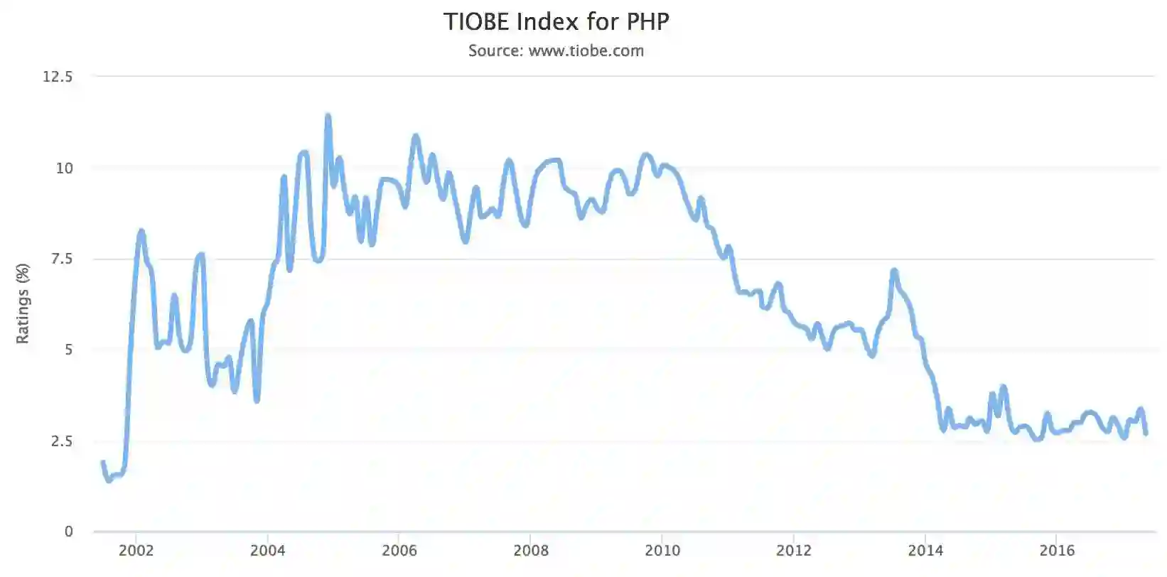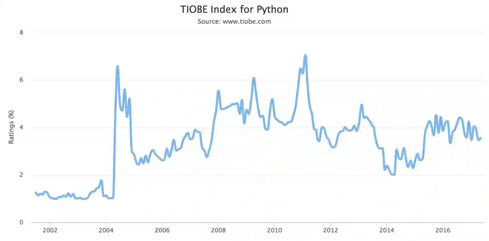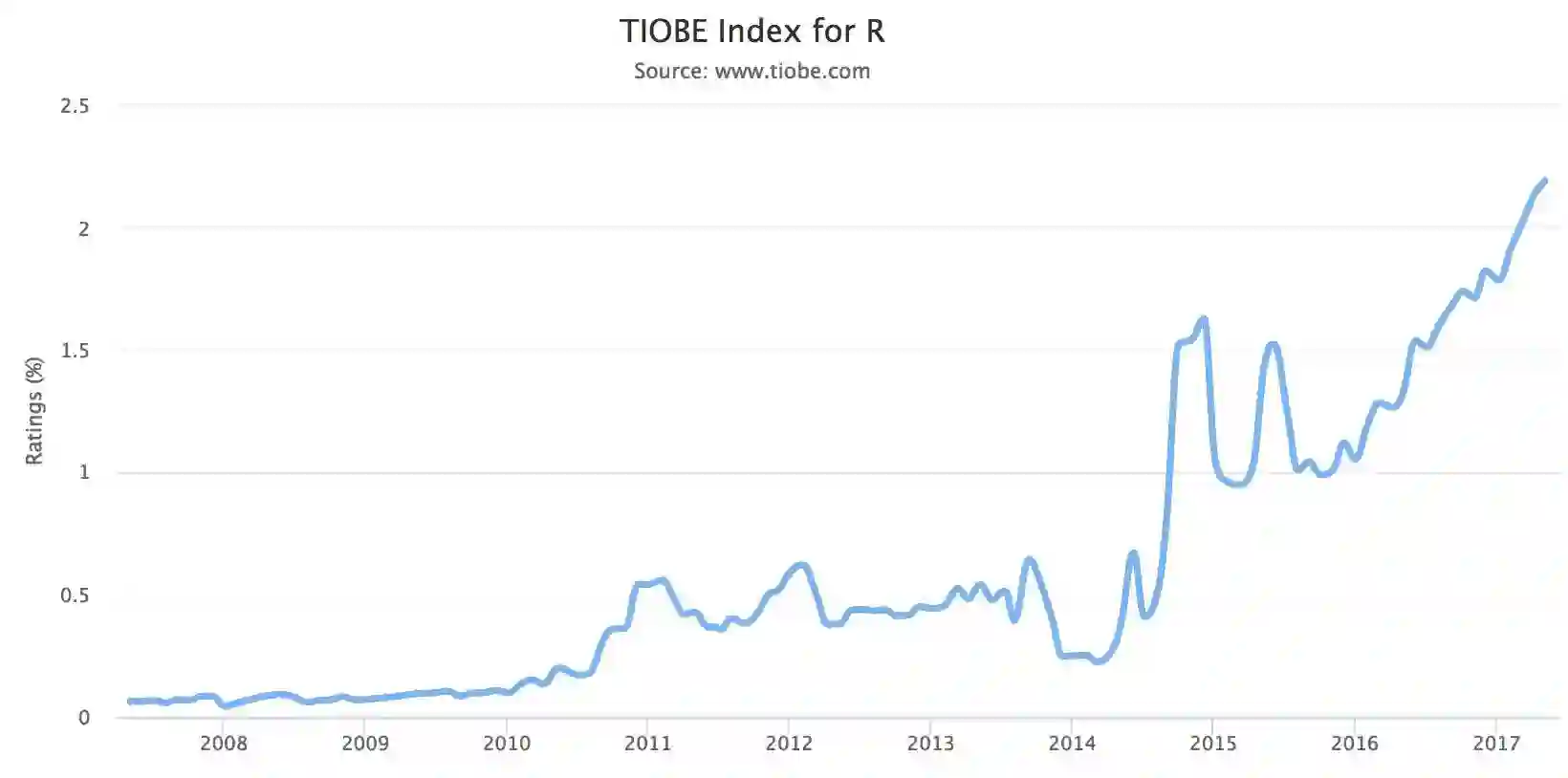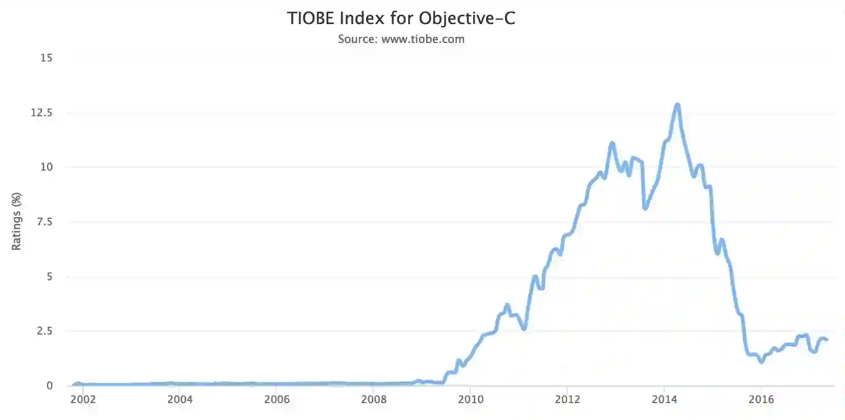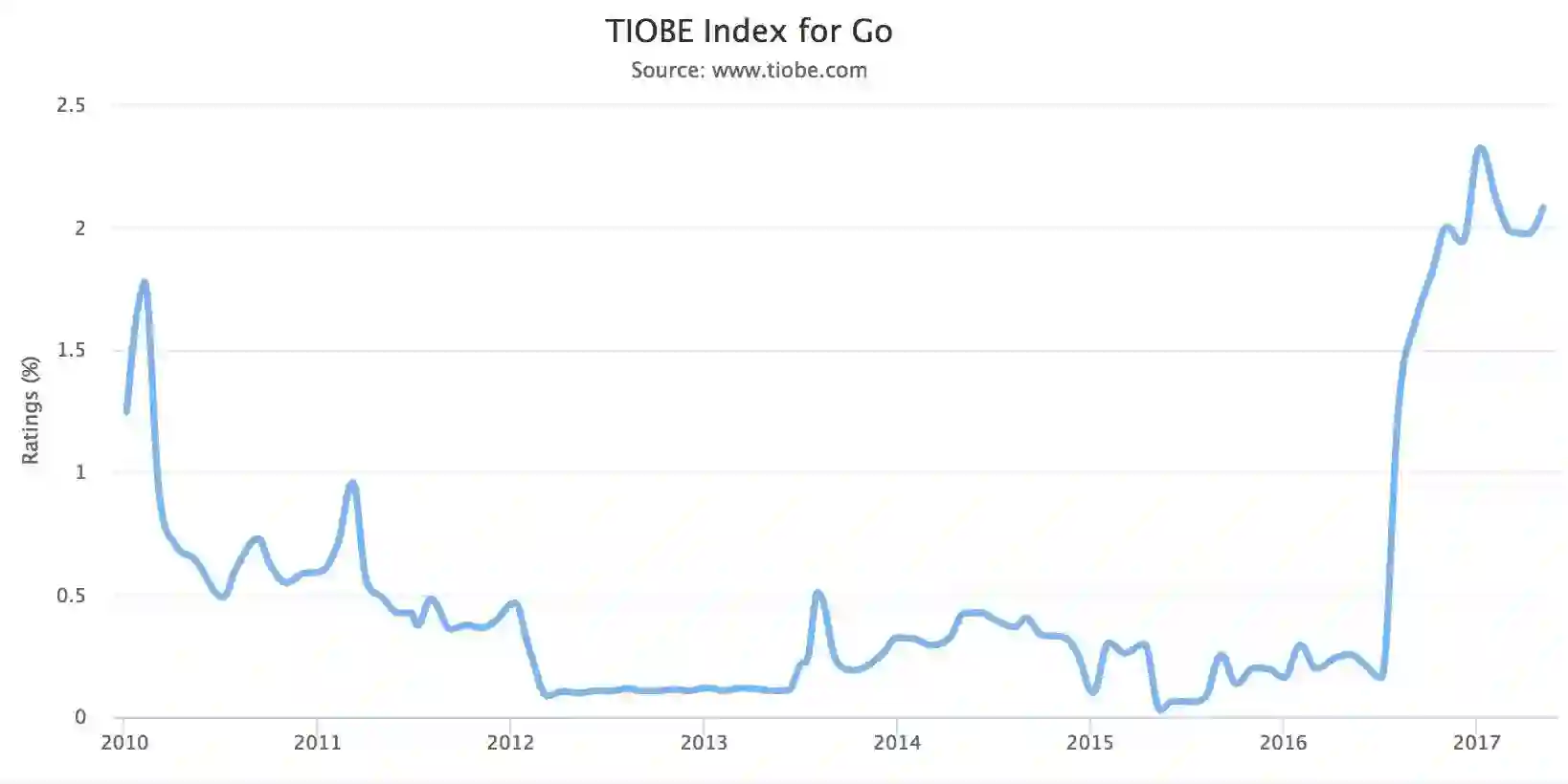 TIOBE 是个比较权威的榜单,从 google、bing、Yahoo、Wikipedia、Amazon、YouTube、Baidu 等大型网站去获取数据,进行综合评比