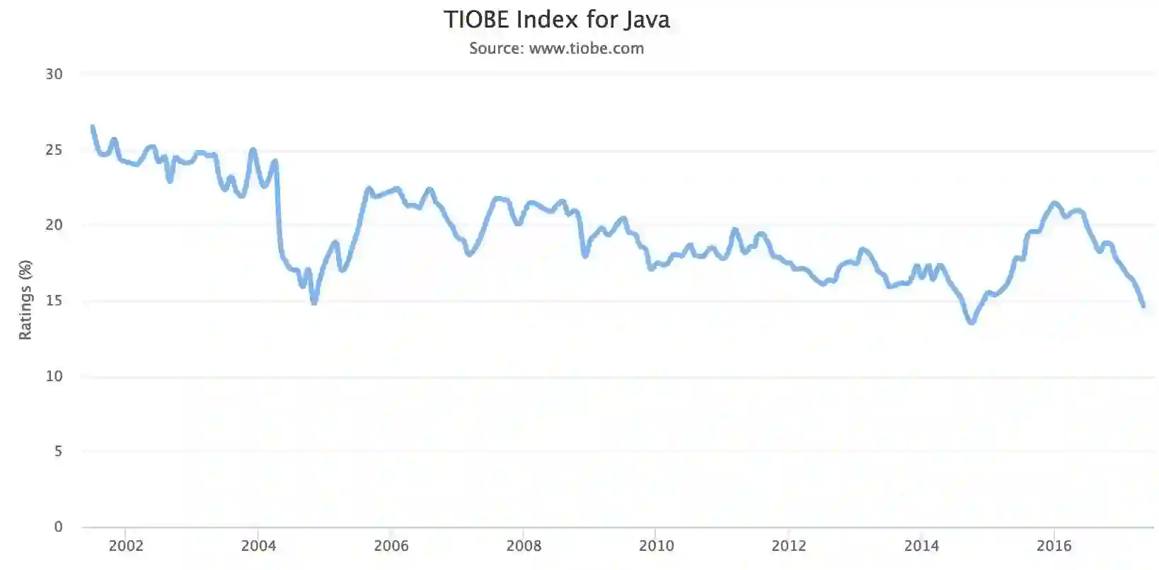 可以看到 java 和 c 出现了明显的下滑,排名虽然依然靠前,但评级都下跌了超过 6%