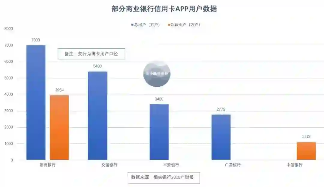 在总用户数上,招商银行以7003万户居首,交通银行、平安银行和广发银行分别为5400万户、3400万户、2775万户。不过,交通银行的口径是绑卡用户,其他银行通常为注册用户口径。