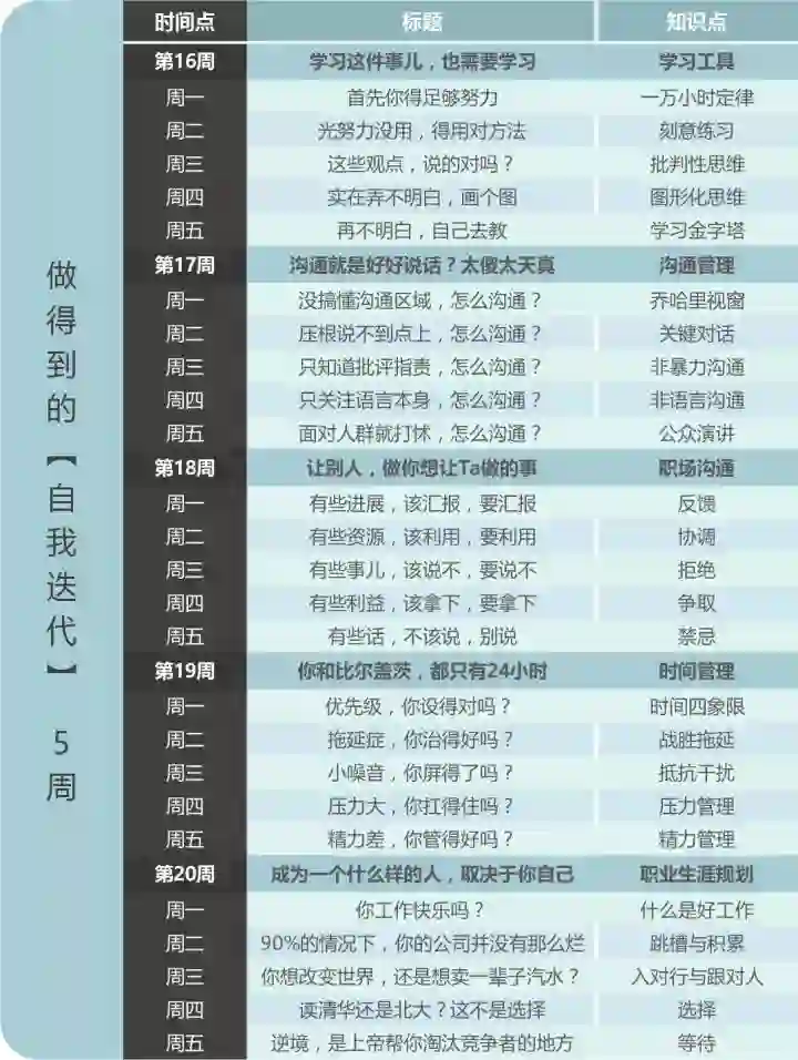 当你觉得同事都是傻X听不懂人话的时候,当你觉得自己低头哈腰甲方依旧咄咄逼人的时候,当你觉得老公跟你沟通变少了疑似外面有小鬼了的时候(非常实用)。请看第81课至第90课,教你赢得人心的沟通术。