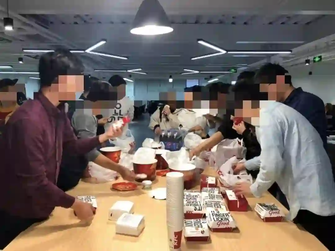 不到3分钟,两大箱子肯德基,都没看清楚有什么就已经被洗劫一空,就像从来没有存在过,连箱子都被拿走了。