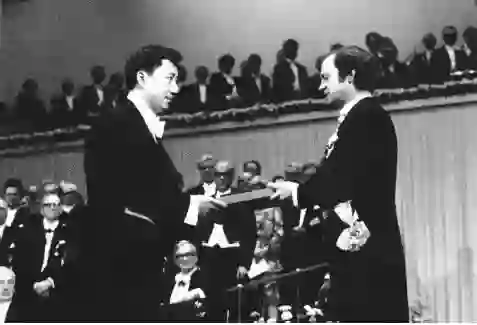 1976 年丁肇中荣膺诺贝尔物理学奖一幕