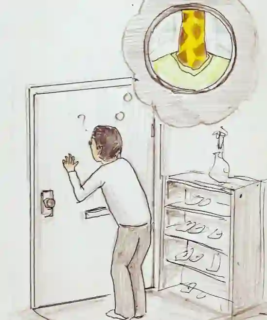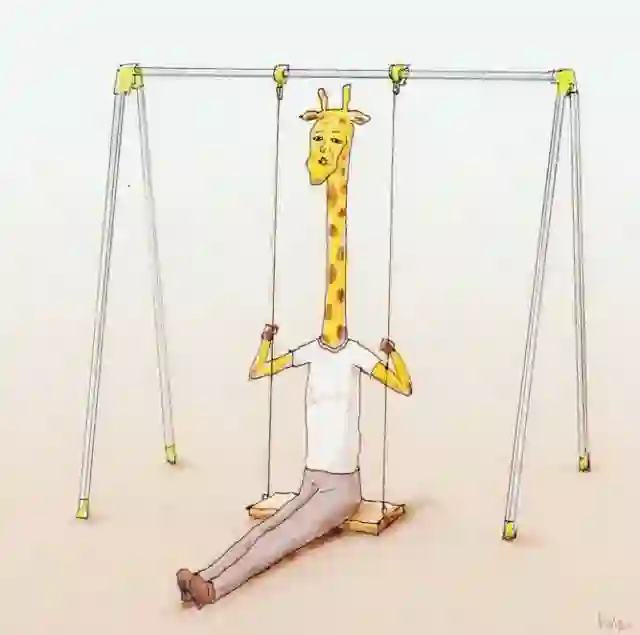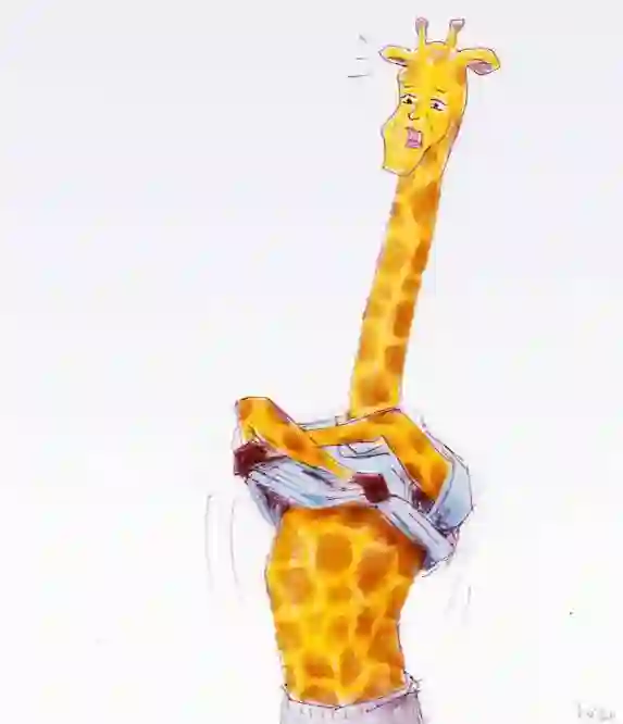 他很喜欢在画里用一只长颈鹿的形象