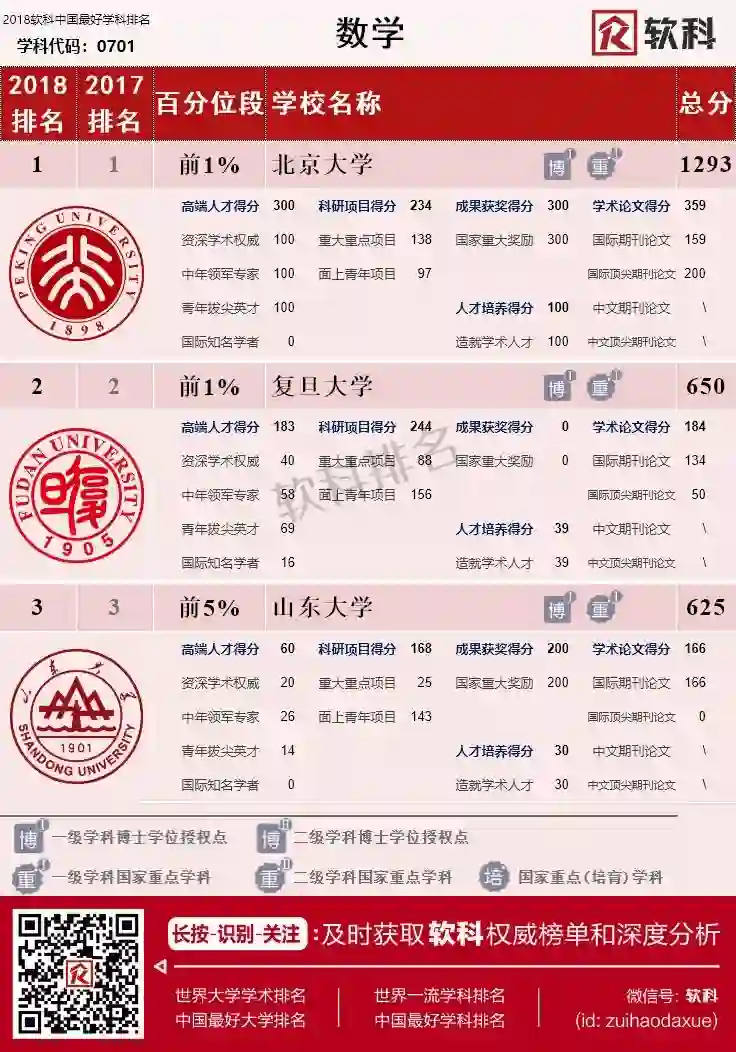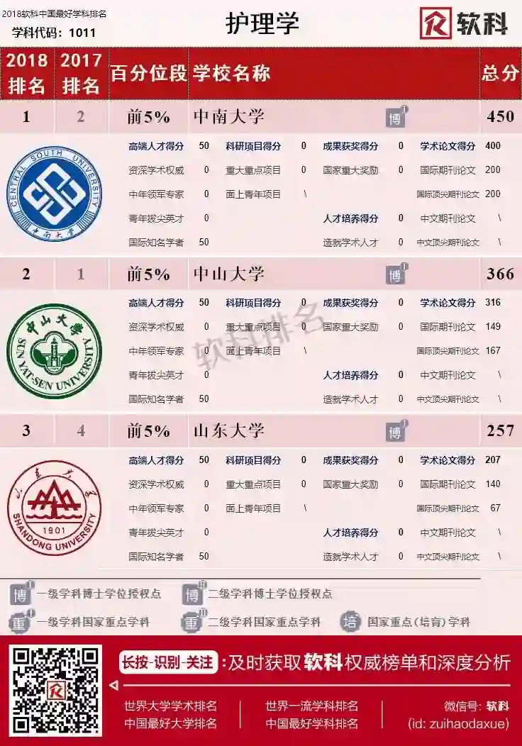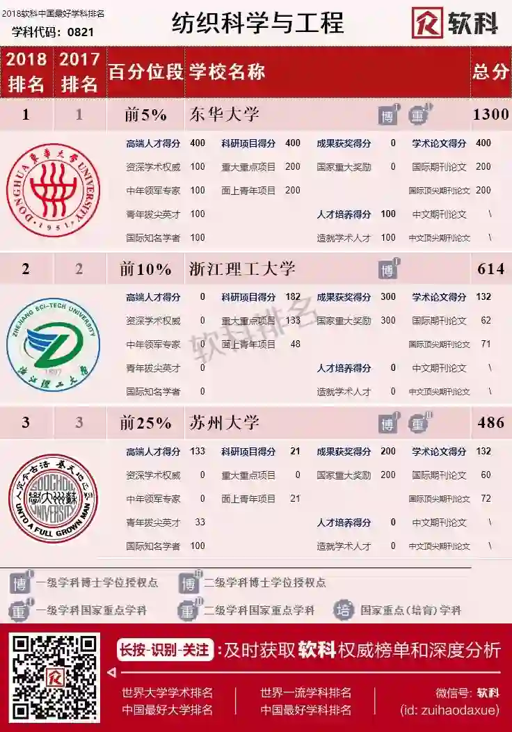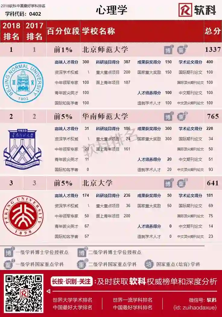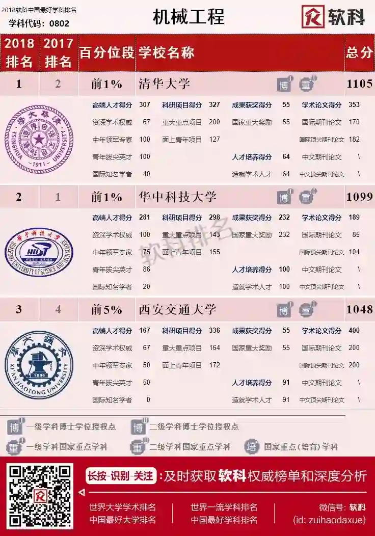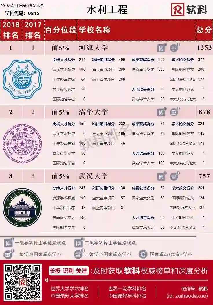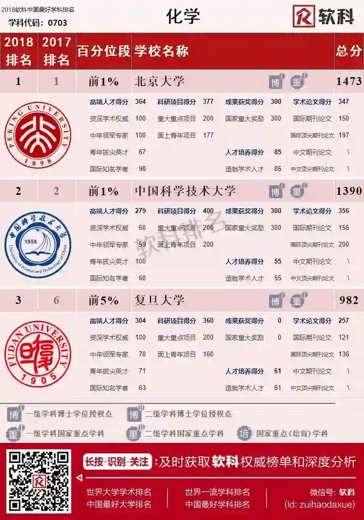 获取完整排名结果、排名方法、指标数据等更多信息,请关注微信公众号“软科”或访问软科旗下最好大学网(www.zuihaodaxue.com)。下载2018中国最好学科排名完整榜单,请长按识别下方二维码并关注微信公众号“软科”后,回复“2018BCSR”即可。