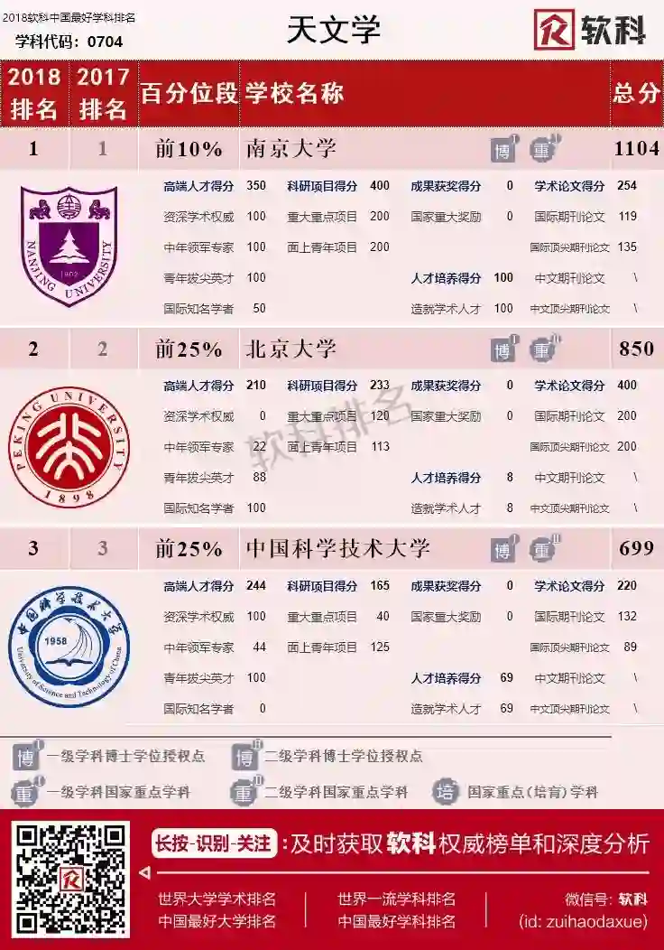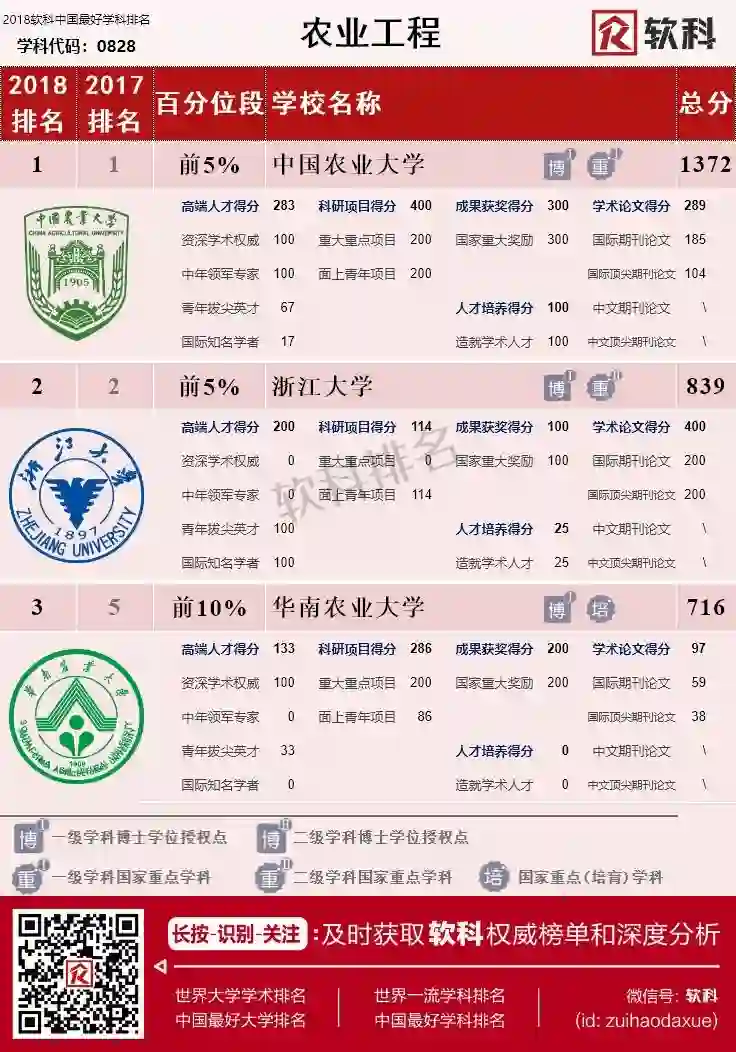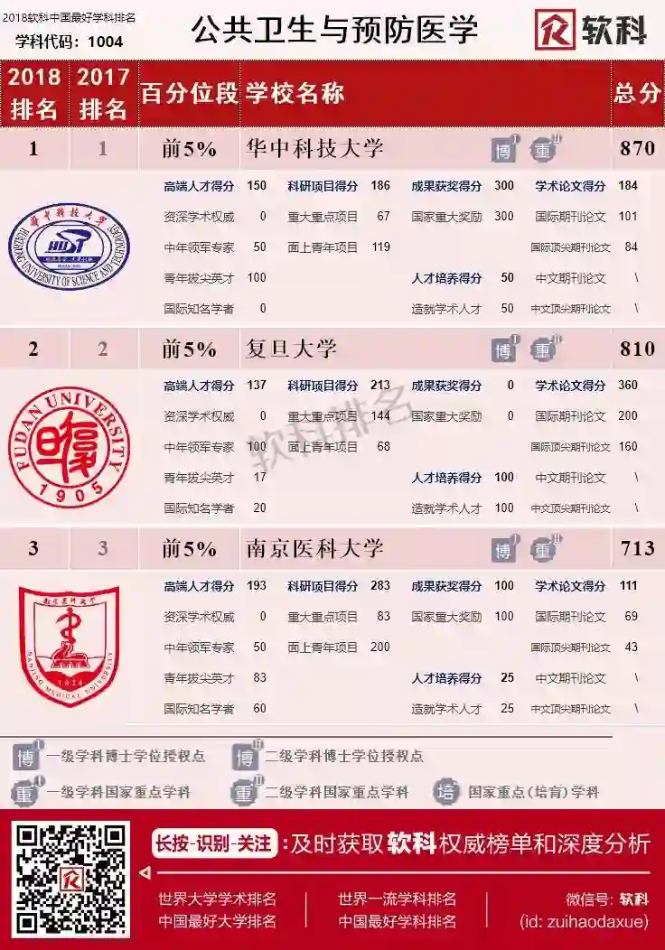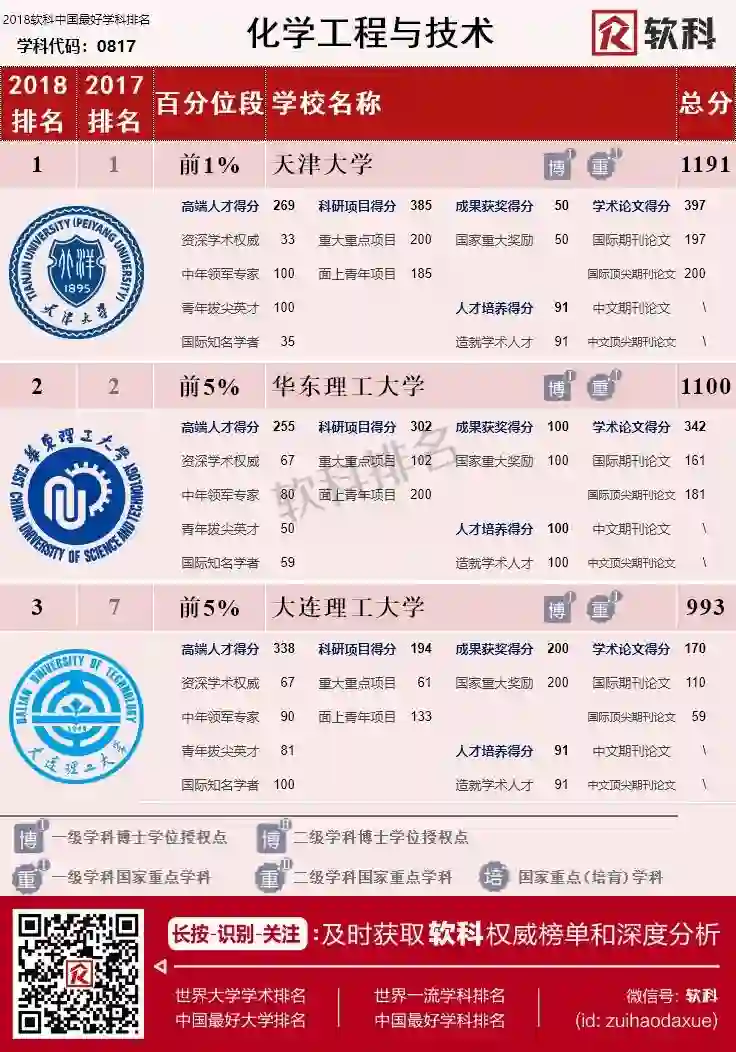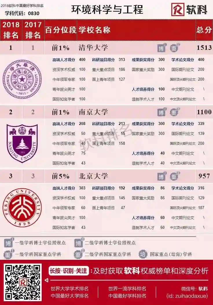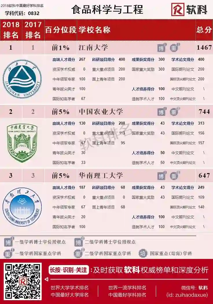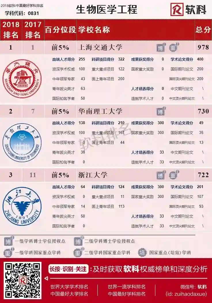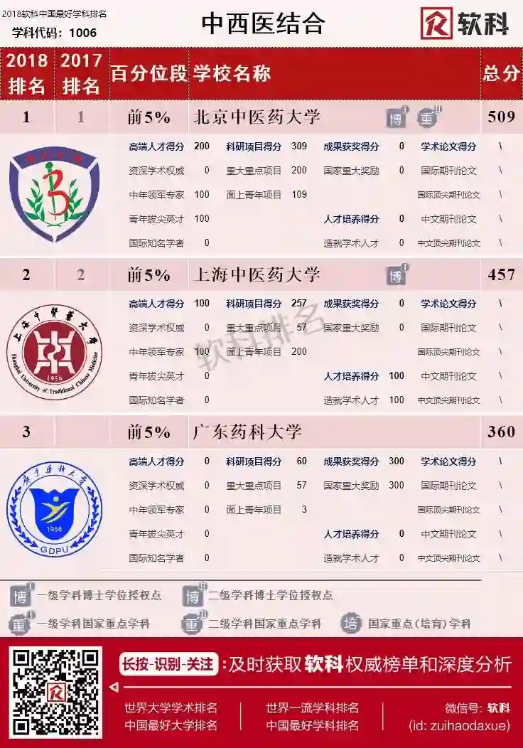 获取完整排名结果、排名方法、指标数据等更多信息,请关注微信公众号“软科”或访问软科旗下最好大学网(www.zuihaodaxue.com)。下载2018中国最好学科排名完整榜单,请长按识别下方二维码并关注微信公众号“软科”后,回复“2018BCSR”即可。