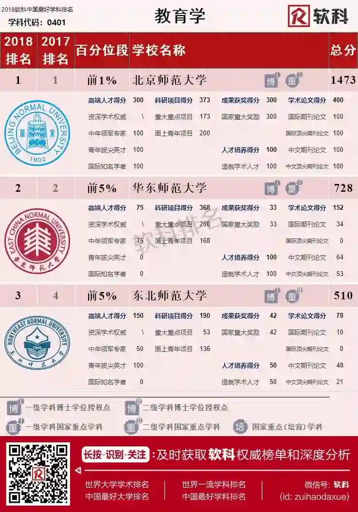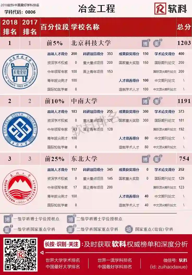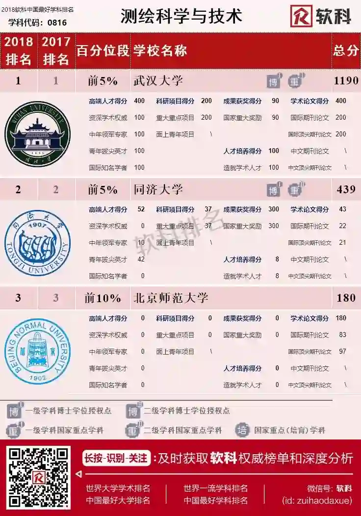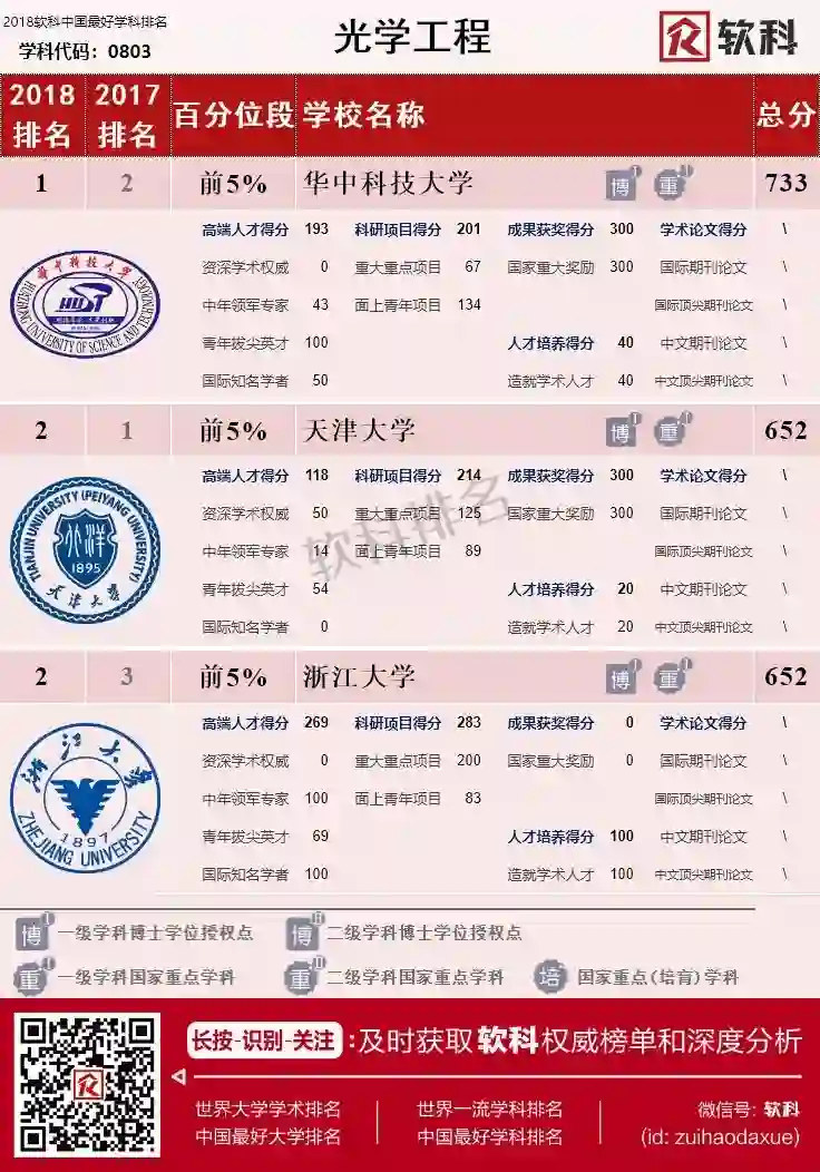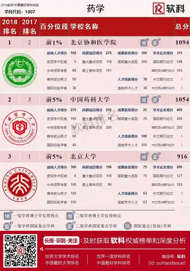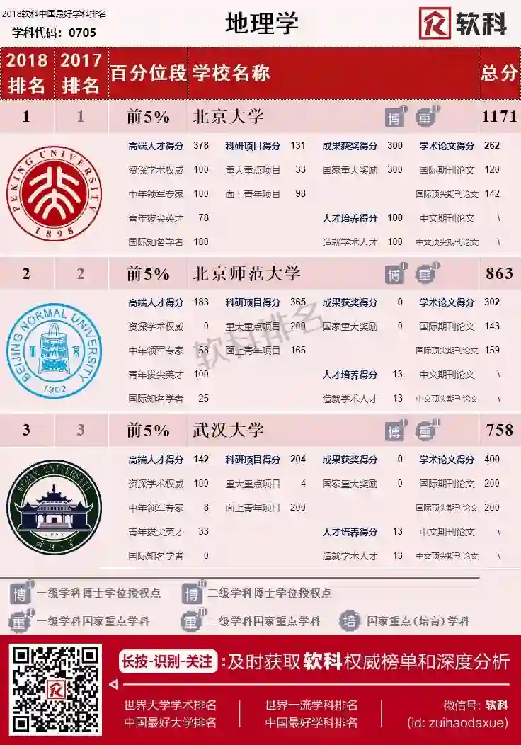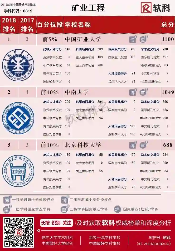 获取完整排名结果、排名方法、指标数据等更多信息,请关注微信公众号“软科”或访问软科旗下最好大学网(www.zuihaodaxue.com)。下载2018中国最好学科排名完整榜单,请长按识别下方二维码并关注微信公众号“软科”后,回复“2018BCSR”即可。