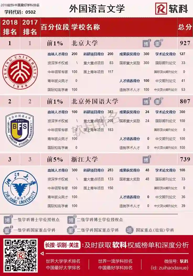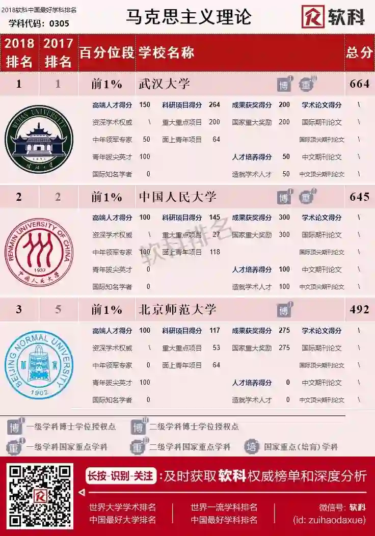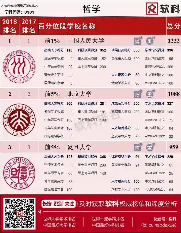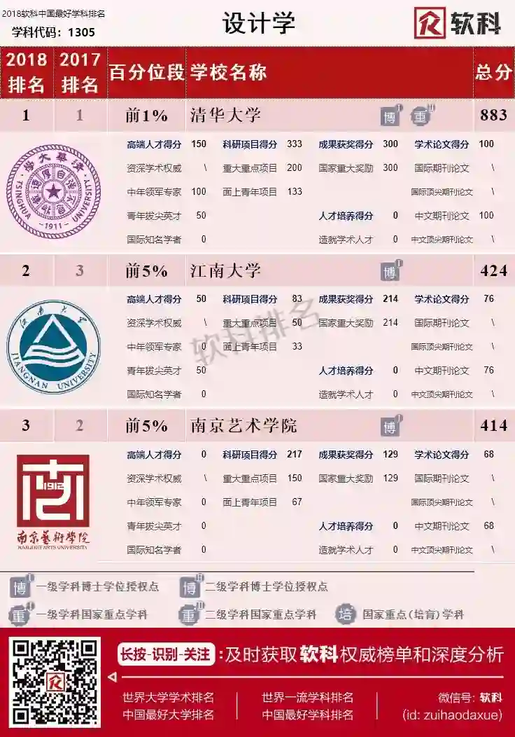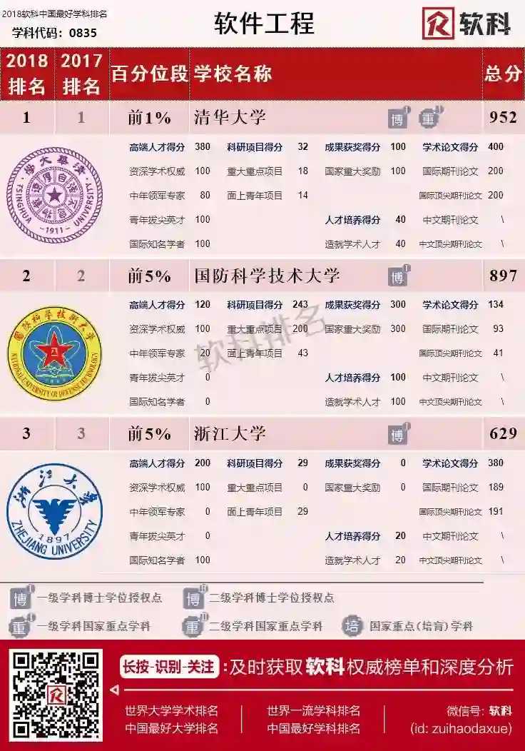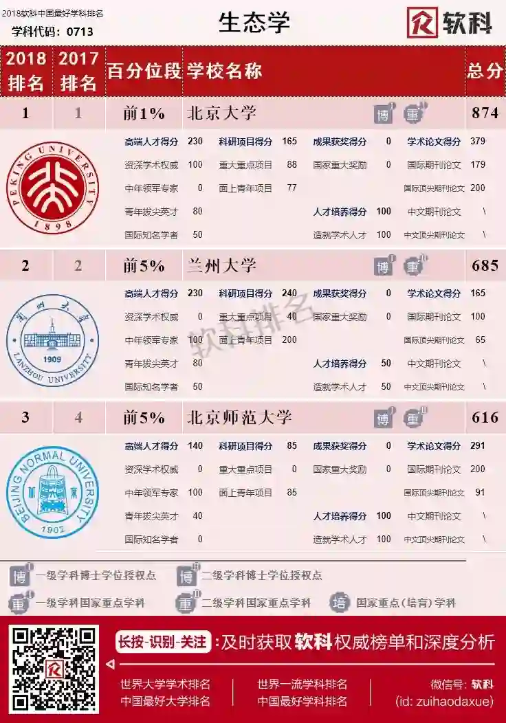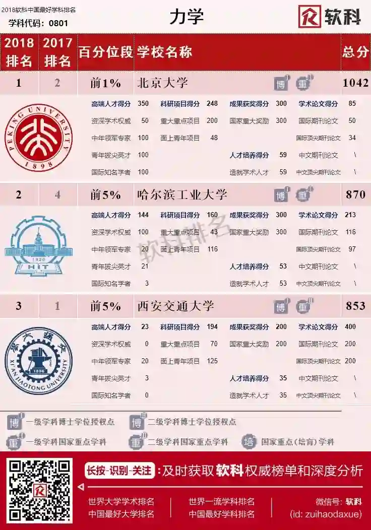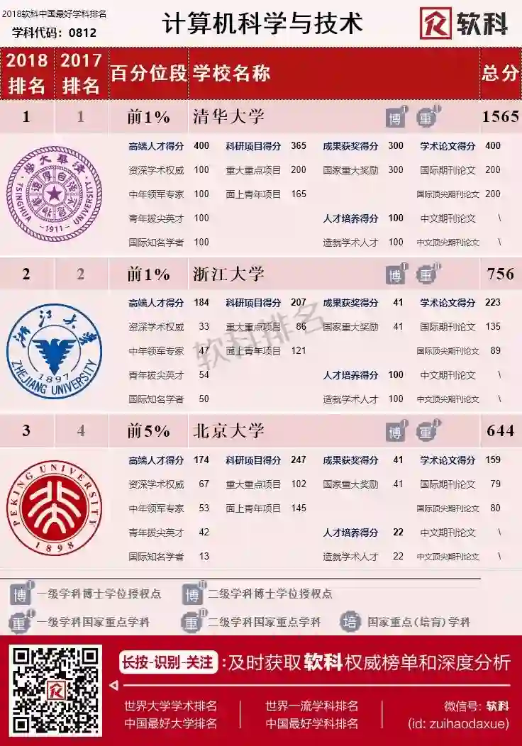 获取完整排名结果、排名方法、指标数据等更多信息,请关注微信公众号“软科”或访问软科旗下最好大学网(www.zuihaodaxue.com)。下载2018中国最好学科排名完整榜单,请长按识别下方二维码并关注微信公众号“软科”后,回复“2018BCSR”即可。