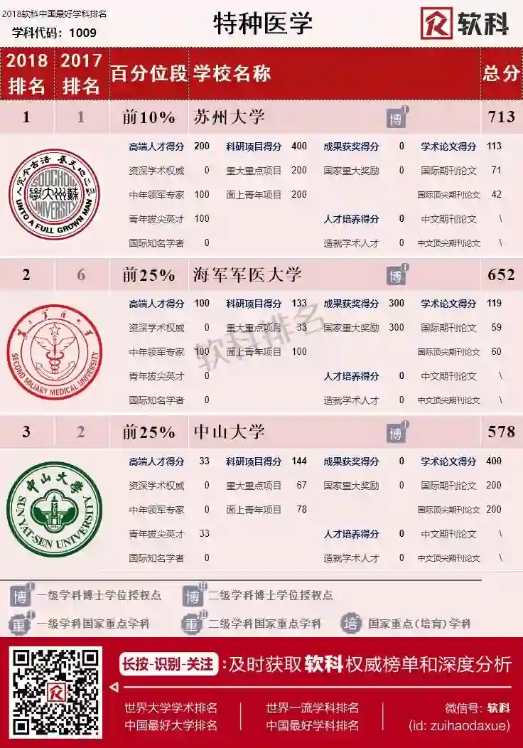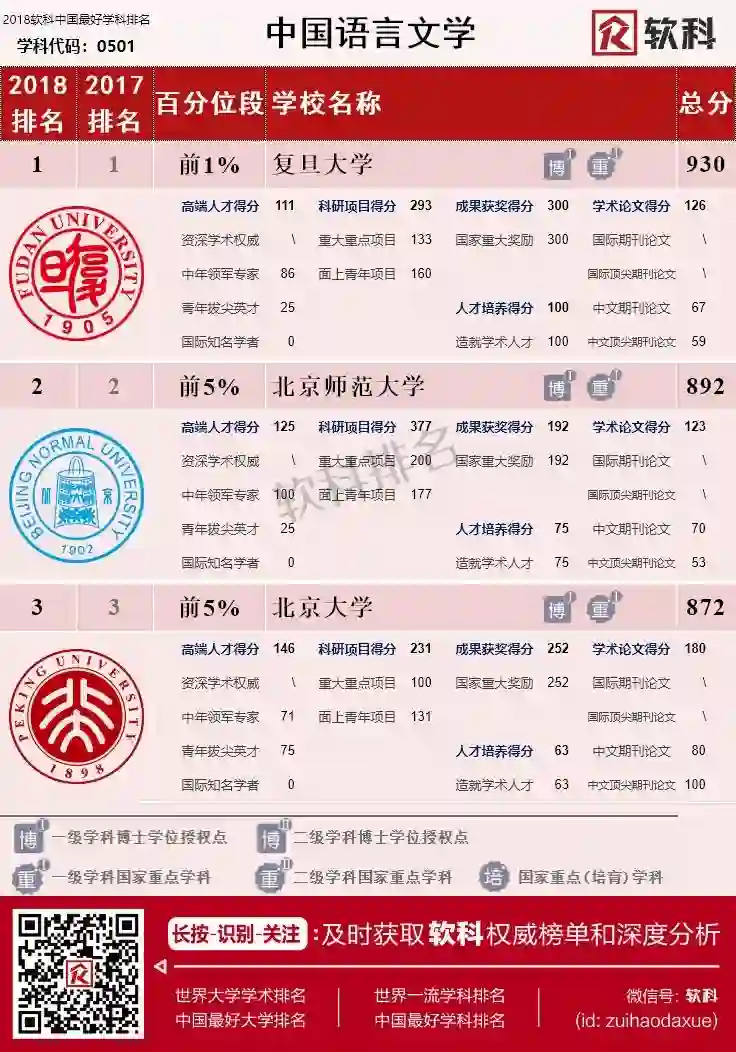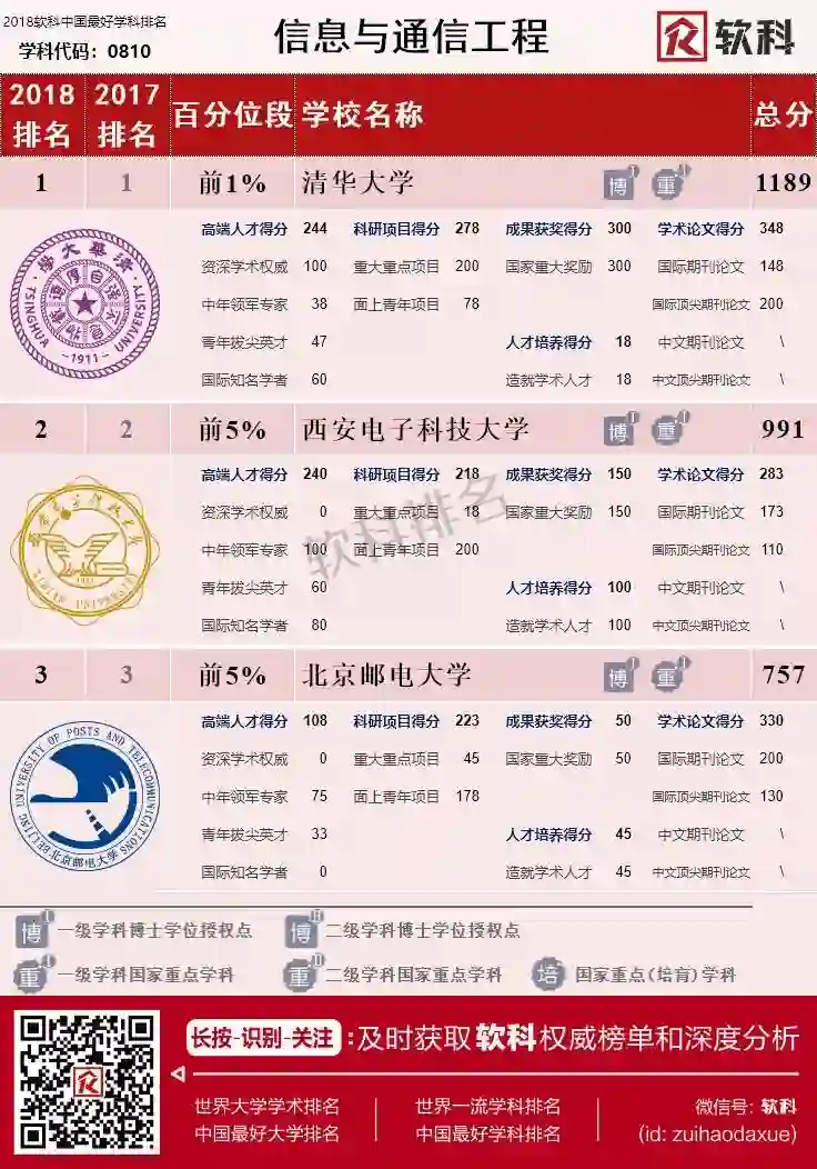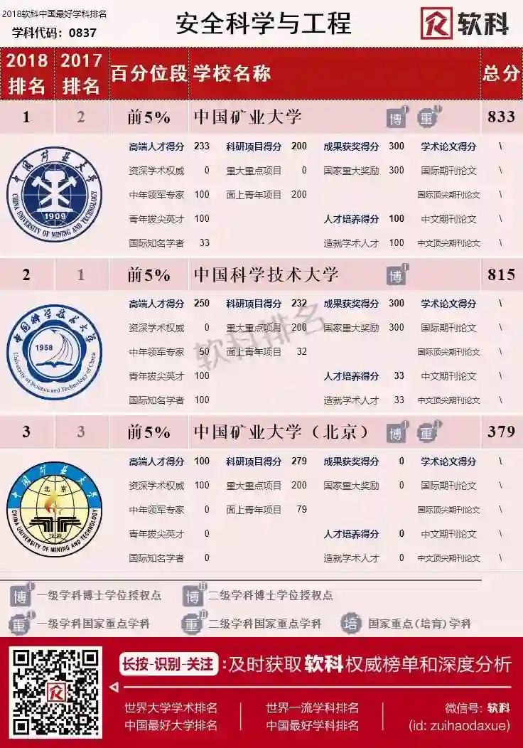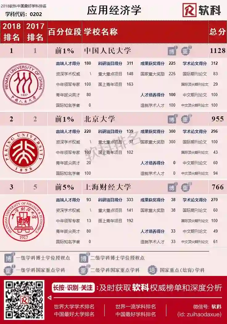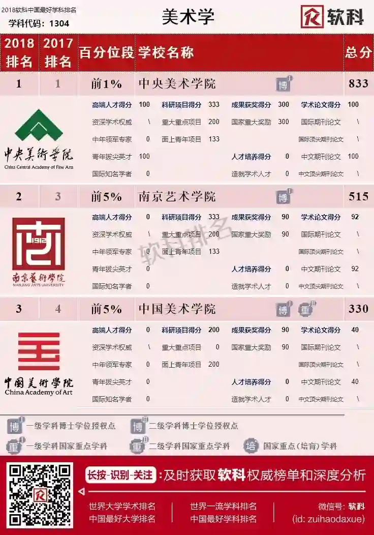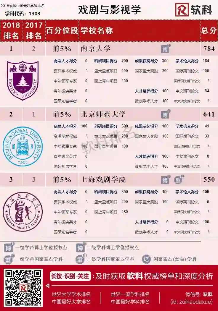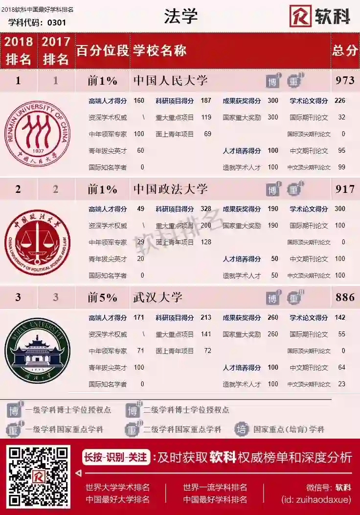 获取完整排名结果、排名方法、指标数据等更多信息,请关注微信公众号“软科”或访问软科旗下最好大学网(www.zuihaodaxue.com)。下载2018中国最好学科排名完整榜单,请长按识别下方二维码并关注微信公众号“软科”后,回复“2018BCSR”即可。