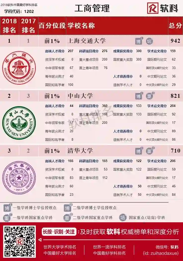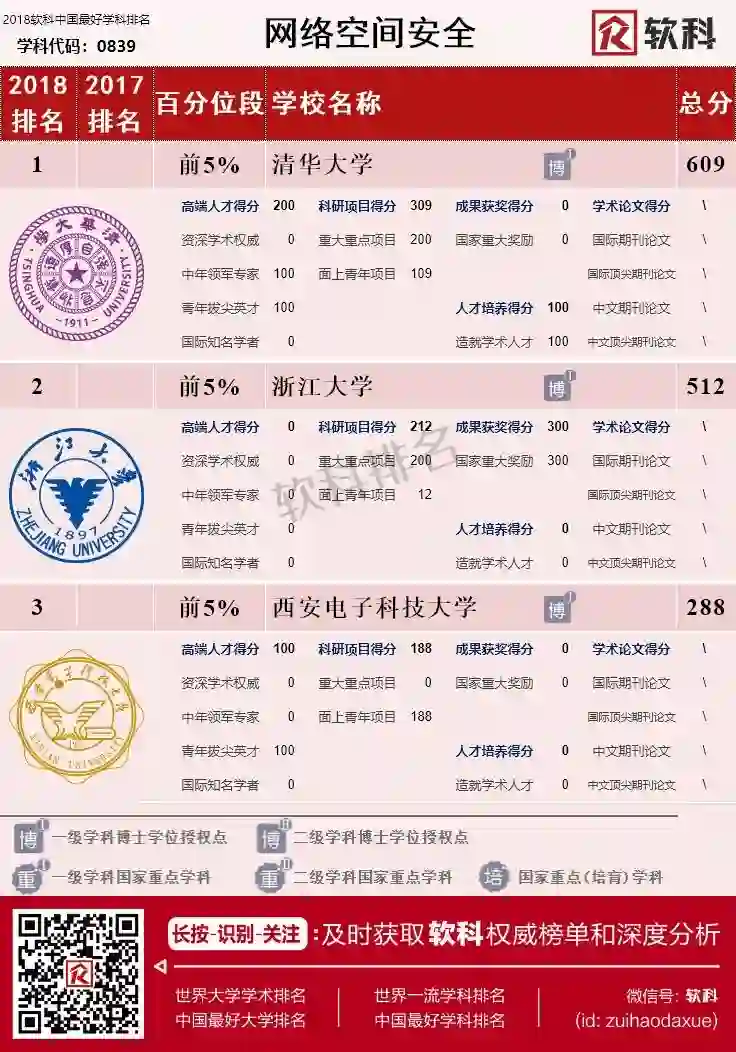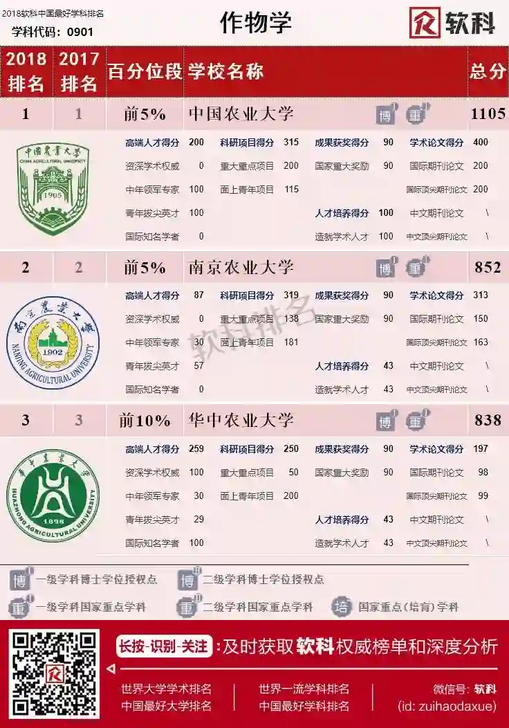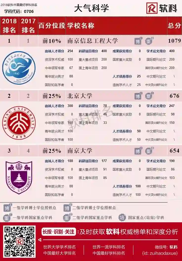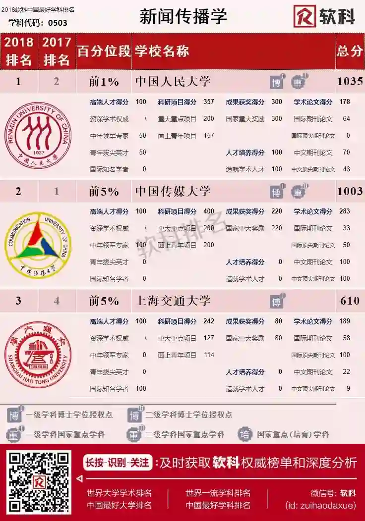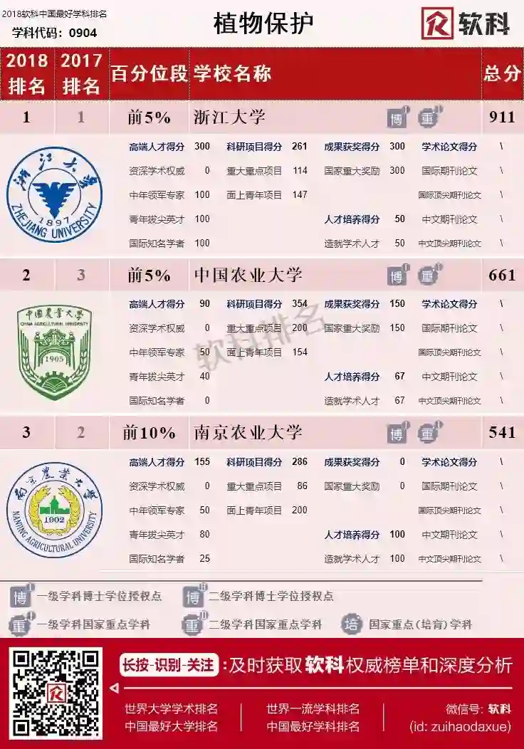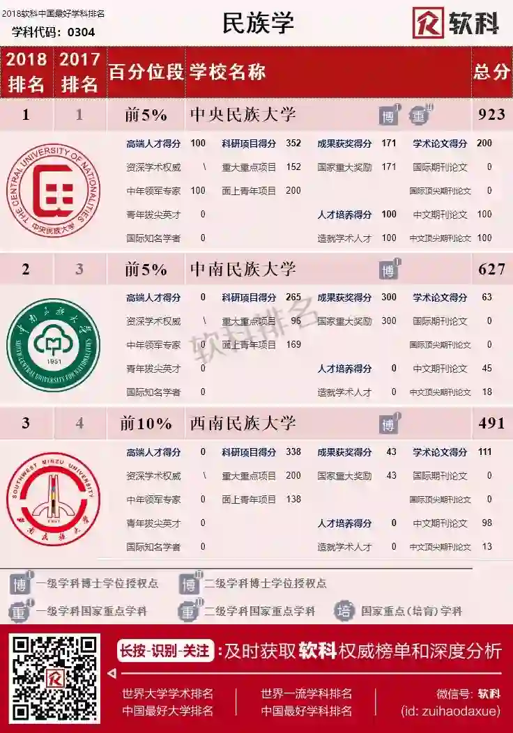 获取完整排名结果、排名方法、指标数据等更多信息,请关注微信公众号“软科”或访问软科旗下最好大学网(www.zuihaodaxue.com)。下载2018中国最好学科排名完整榜单,请长按识别下方二维码并关注微信公众号“软科”后,回复“2018BCSR”即可。