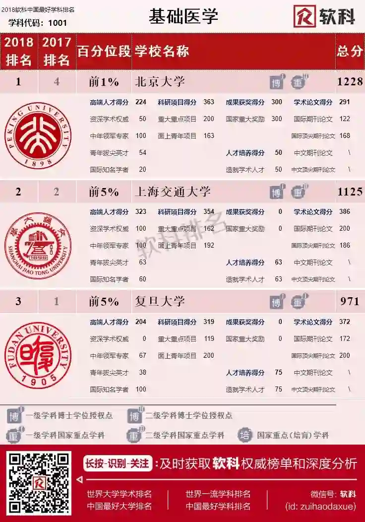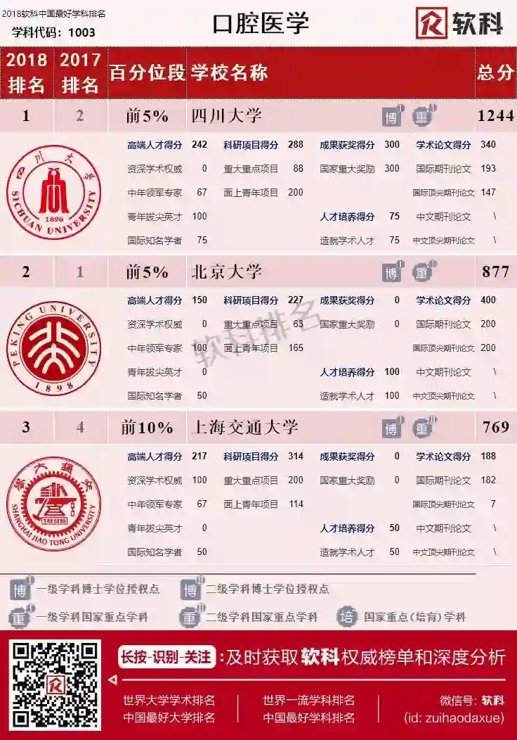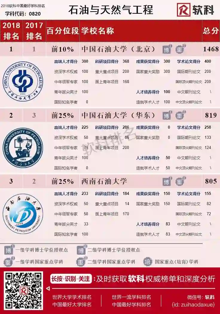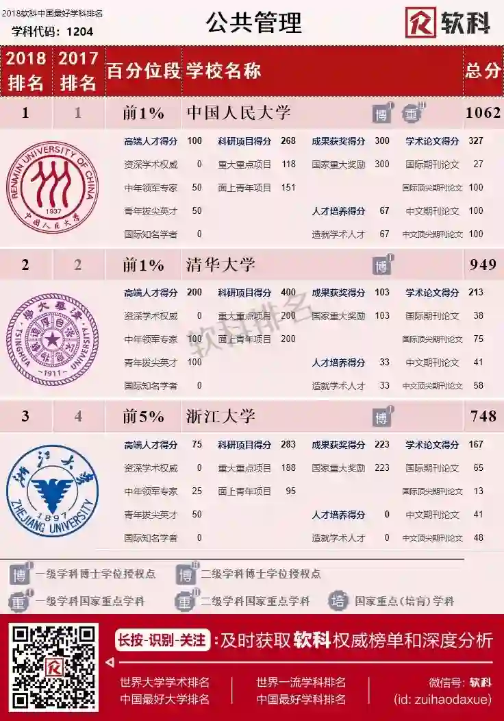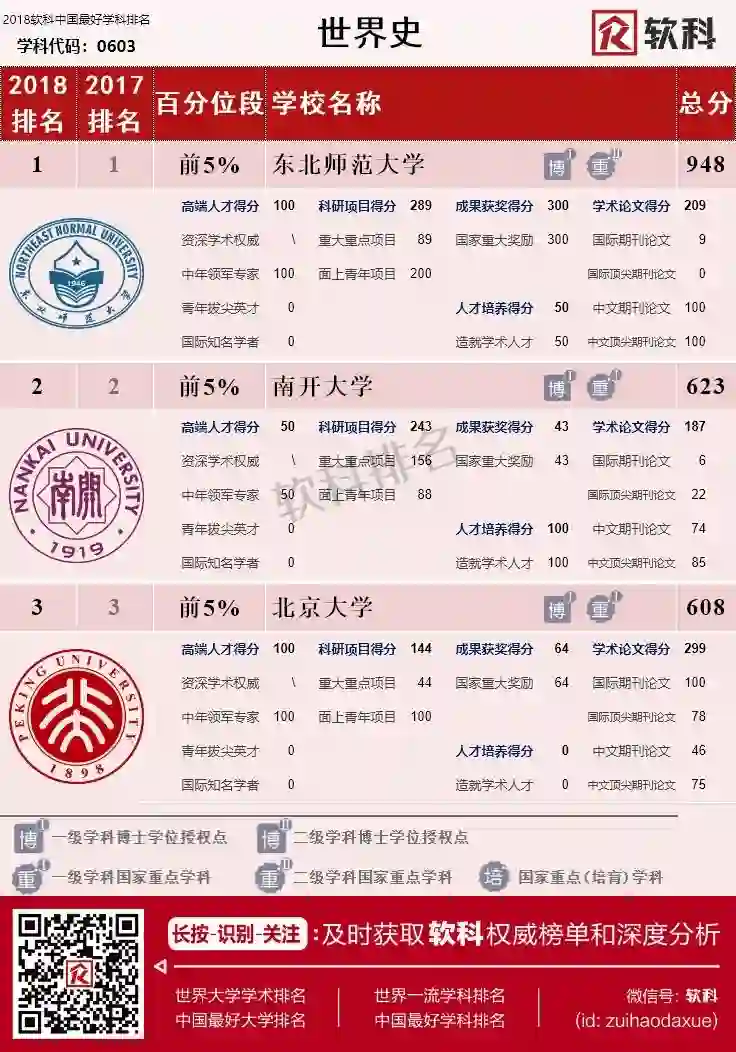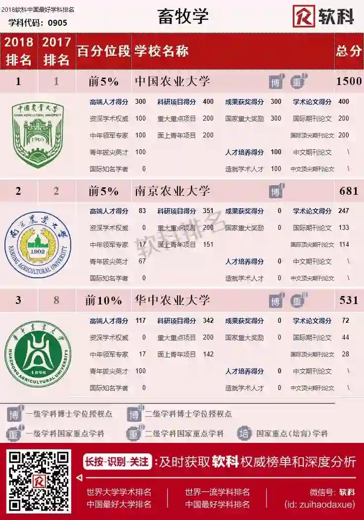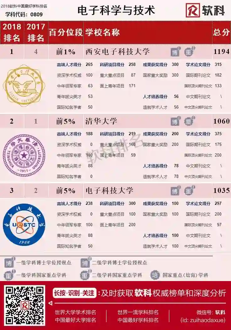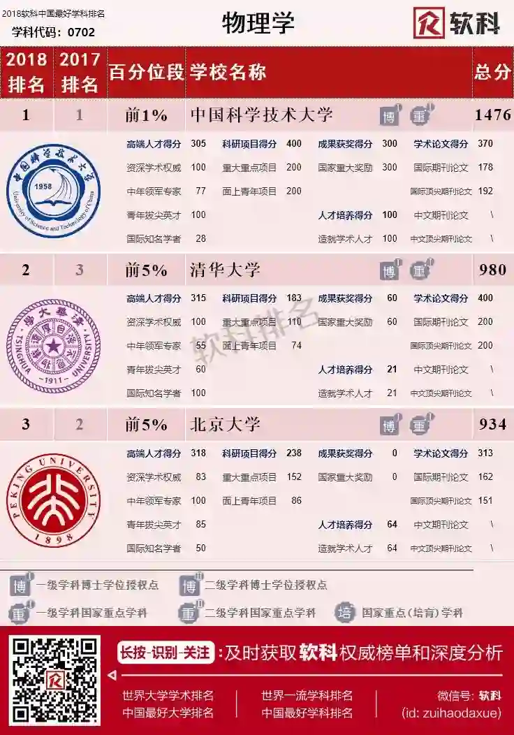 获取完整排名结果、排名方法、指标数据等更多信息,请关注微信公众号“软科”或访问软科旗下最好大学网(www.zuihaodaxue.com)。下载2018中国最好学科排名完整榜单,请长按识别下方二维码并关注微信公众号“软科”后,回复“2018BCSR”即可。