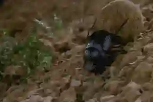 然而,他还是被一块1米长的巨石击中头部,当场身亡。这块巨石看起来大概是门框一类的东西。
