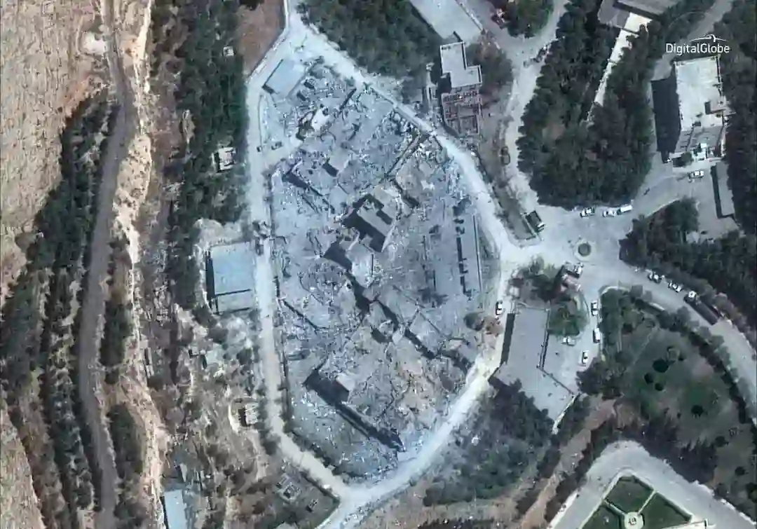 图丨DigitalGlobe 的 WorldView-3 卫星今年 4 月 15 日拍到叙利亚大马士革一处科研中心被联军空袭后的图像(来源:DigitalGlobe)