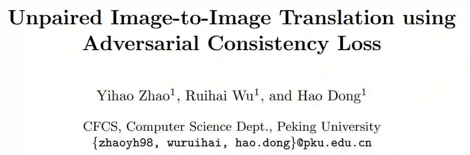 文《Unpaired Image-to-Image Translation using Adversarial Consistency Loss》,论文作者来自北大。本论文解读首发于知乎(https://zhuanlan.zhihu.com/p/156092551)。