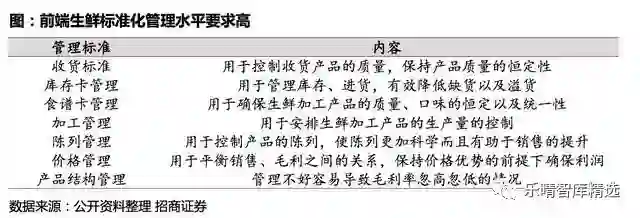 同时,在采购端避免采购员吃回扣的问题,采购的监督体系必须完善,分散化的供应链体系难以形成标准化的管理体系,而在前端的损耗控制以及产品结构上不稳定性较高,整体产品的新鲜度以及损耗率难以有效保证。