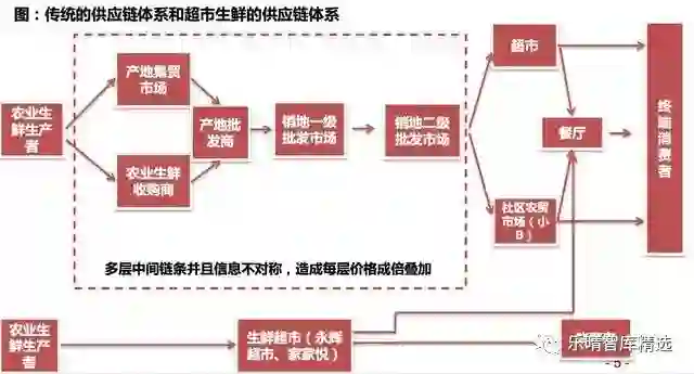 以农贸市场为中心的传统模式中间渠道多、效率低。