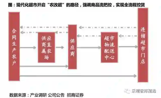 一端是零售企业自建采购团队,形成生鲜由生产到销售的闭环,典型代表如永辉超市、家家悦、中百集团、生鲜传奇。