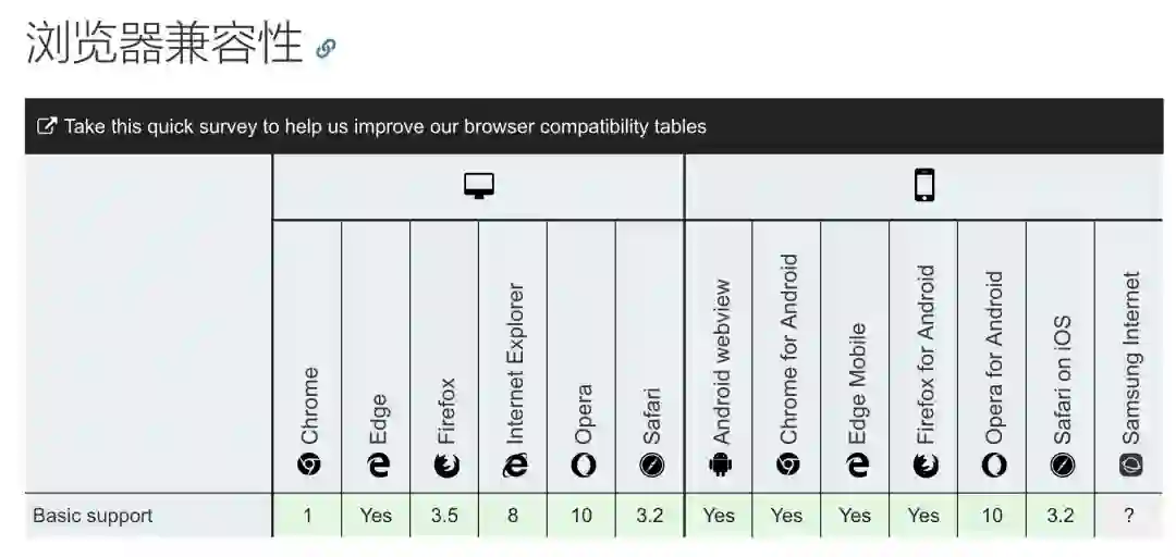 从图中可以看到,这两个API已经很好的兼容各个浏览器。