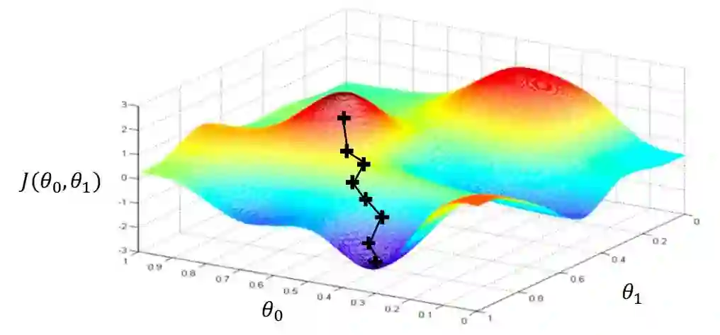我们不断移动,直至收敛达到这张图的最低点(局部最小值)。