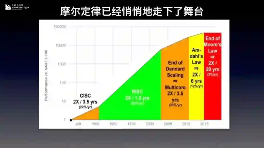 2、2010 年,北极光的策略开始转向 " 非摩尔定律驱动 ",即寻找能够不依赖于摩尔定律的技术——独特的算法、特殊的工艺、软硬件结合等都有可能建立摩尔定律以外的机会,半导体公司更像是系统公司。