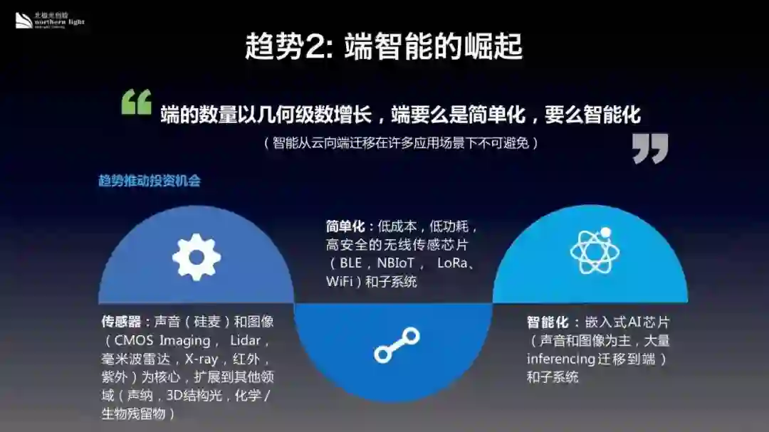 我们认为在端智能里面有两个趋势,有人说就是智能终端,其实在智能之前更重要的是简单化。