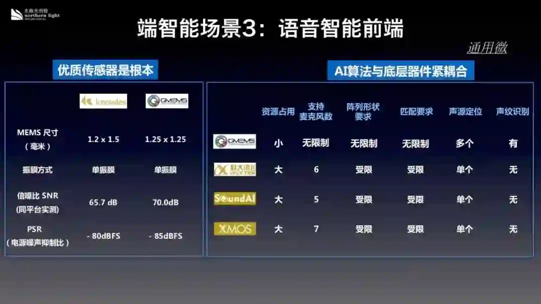 要把一个云前端做好,其实要有两个突破,第一个突破,你的硬件一定要好,就是你的麦克风要能做到最高的性噪比,Gmems的产品已经和全世界最好的麦克风性能是一样的,明年初的时候70BD,也就是说比楼氏还要好的产品会做出来,大家觉得66到70没有多少,其实性燥比是将近三倍的差别。