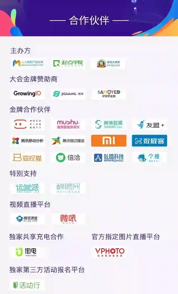 在往期大会中,超过20+企业现场展示,包括洛可可、小米、喜马拉雅、个推、极光推送、热云数据、神策、墨刀、游族网络、猪八戒、变现猫、腾讯移动分析等。