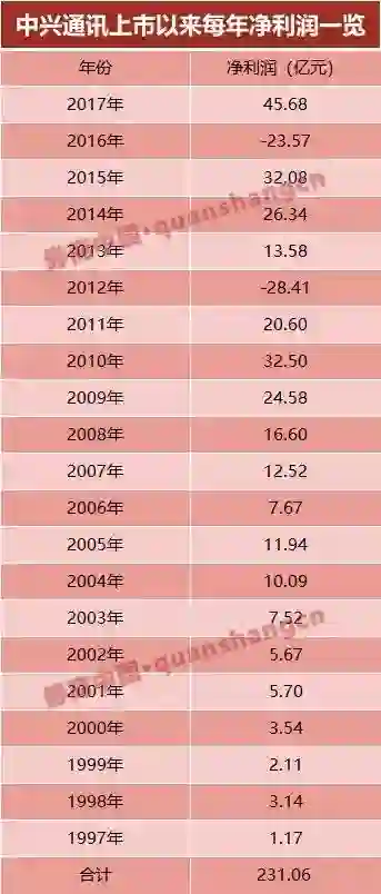 根据券商中国计算,此次14亿美元罚款加上此前中兴通讯已缴纳了8.9亿美元的罚款,罚单金额累计超过22.9亿美元(折合146.54亿人民币)。而中兴通讯自1997年上市以来,公司归属母公司的净利润累计为231.06亿元,147亿罚单约为过去21年净利的64%。