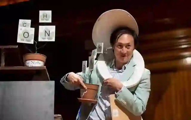 搞笑诺奖颁奖仪式上的胡立德,戴着马桶圈子——因为他的得奖研究是关于动物尿尿的丨pbs.org