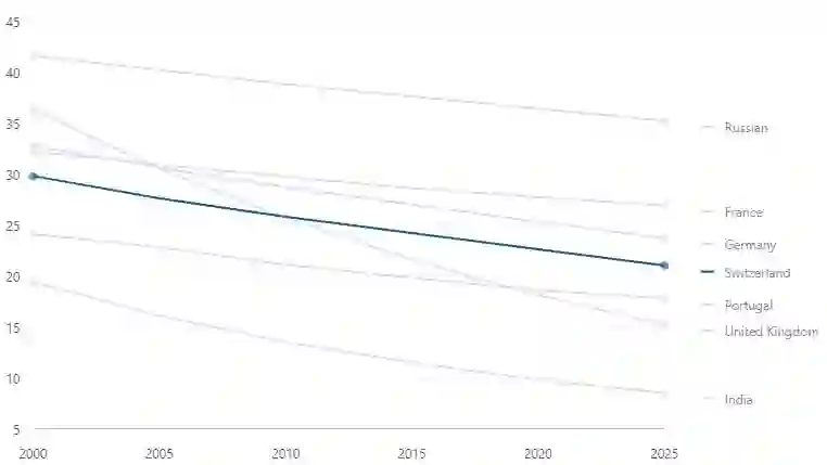 根据这个原则,我们针对折线图和面积图的使用场景设计了 tail-legend: 通过 legend 配置项,图例自动跟随在折线的尾部,使折线和对应图例通过临近的空间的关系自然组织在一起,增强了图形和解释信息之间的视觉联系。