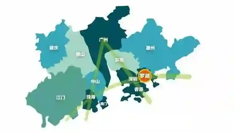 把大湾区形象地比喻成一个巨人,那么这个巨人的头部就是龙头香港,心脏即核心是深圳,中心胸部即是广州,双脚是东莞和佛山,双手是惠州和中山。湾区统一规划后各城市步调一致,整体前行。