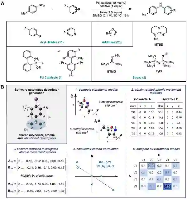 Science在线发表了普林斯顿大学Abigail G. Doyle、Merck Sharp & Dohme公司Spencer D. Dreher(共同通讯)等人题为“Predicting reaction performance in C–N cross-coupling using machine learning”的文章,团队证明了机器学习可以用来预测多维化学空间中合成反应的性能,使用通过高通量实验获得的数据。通过创建脚本来计算和提取原子,分子和振动描述符,用于钯催化的Buchwald-Hartwig芳基卤化物与4-甲基苯胺在各种潜在抑制添加剂存在下的交叉偶联反应。使用这些描述符作为输入和反应产量作为输出,表明随机森林算法提供了比线性回归分析显著改进的预测性能。